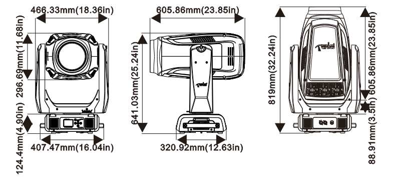 切割盤:一組由4個(gè)切角片組成可控制的光斑切角系統(tǒng),整個(gè)切角系統(tǒng)可做±90°旋轉(zhuǎn)
